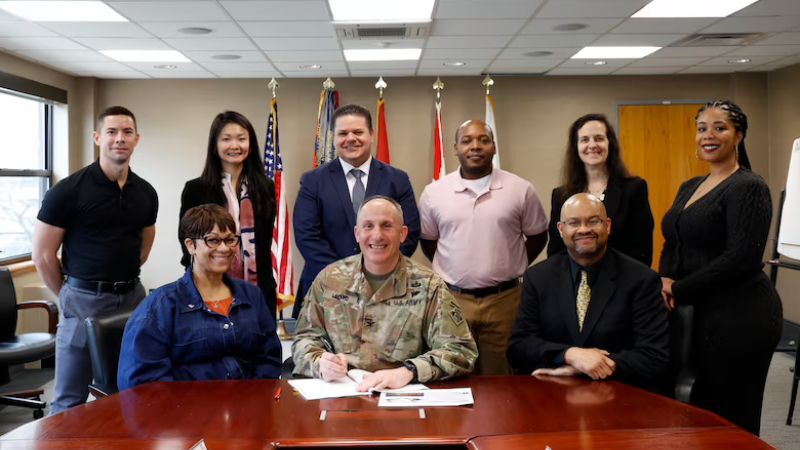Col. John P. Lloyd, commander of the U.S. Army Corps of Engineers North Atlantic Division, signed the updated Advancing Minorities’ Interest in Engineering, or AMIE, program management plan at the NAD headquarters April 6.